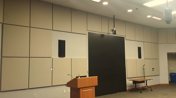 Supply & Install new acoustics panels along the perimeter walls of the auditorium. Supply & install new curtain track and drapery along the stage.