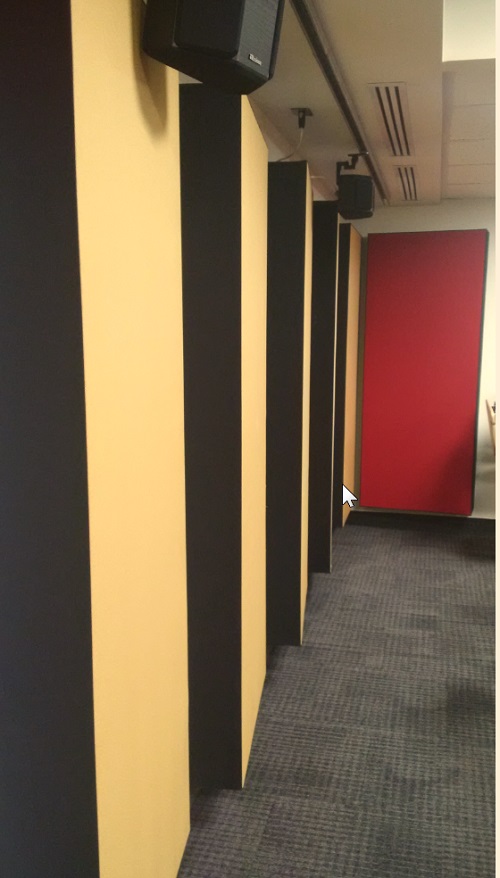 Convert existing classroom into a soundproof media studio. Demo existing partitions & install new partitions & ceilings. New soundproof door at studio entrance. Re-work existing HVAC providing sound dampening. New riser for staged seating with new carpet throughout.