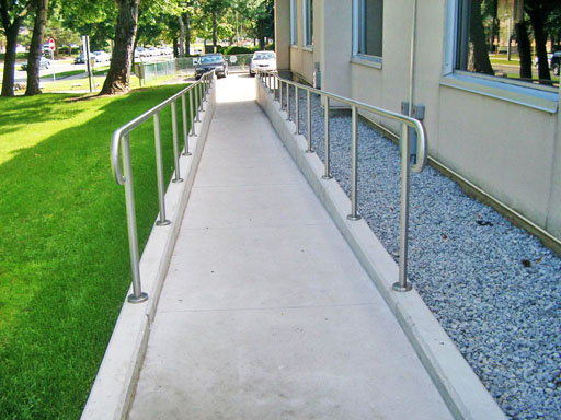 Constructed a new concrete barrier free ramp complete with stainless steel railing.